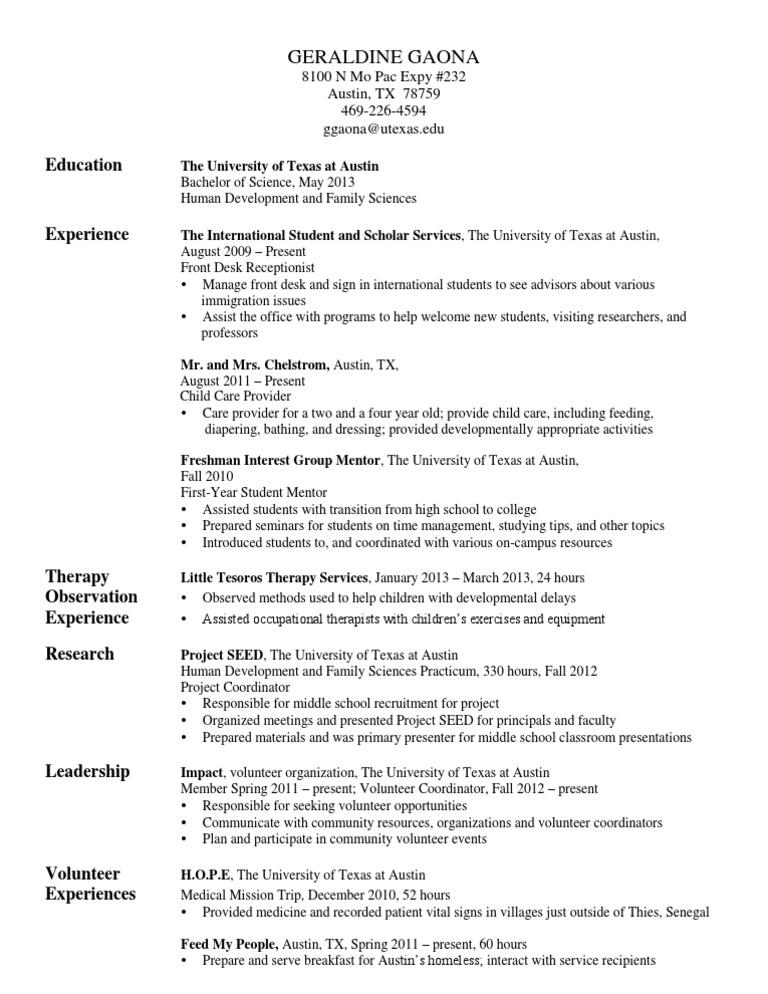 Resume Format Ut Austin ASSADASF