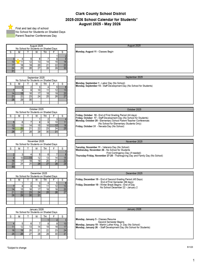 2025 2026 School Calendar Students PDF Academic Term Holidays