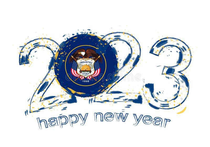 2023 Year in Grunge Style with Flag of Utah Stock Vector Illustration