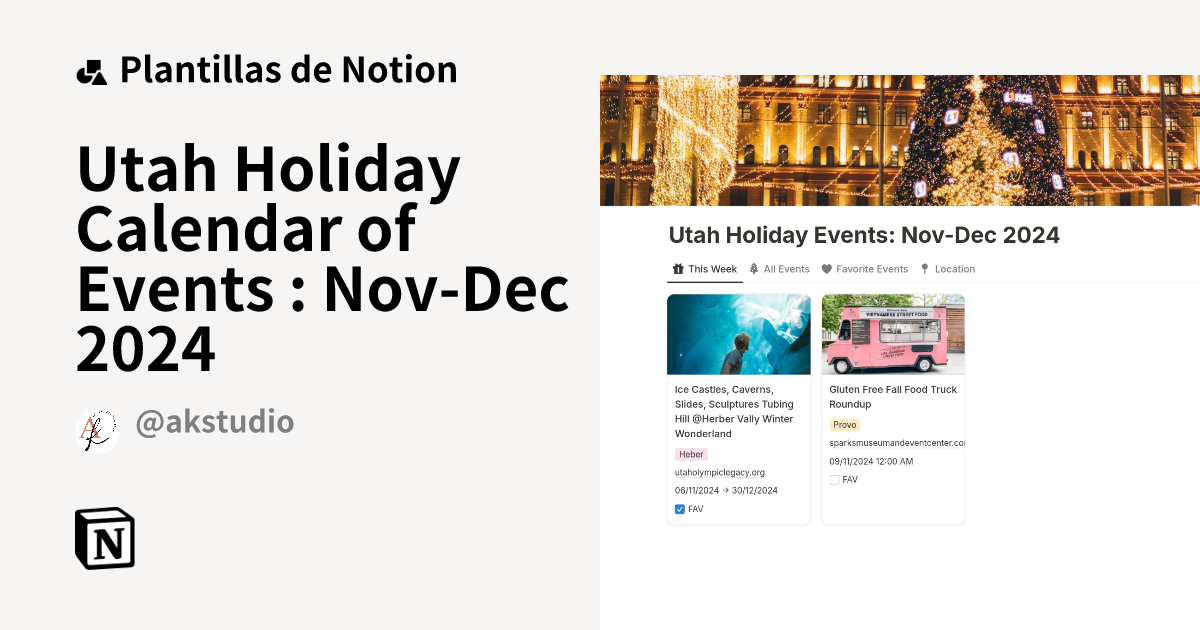 Plantilla Utah Holiday Calendar of Events : Nov Dec 2024 de Angela