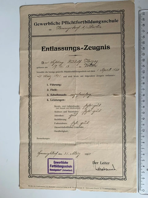 CERTIFICATE 1931 COMMERCIAL Training School Hennigsdorf Berlin OHV