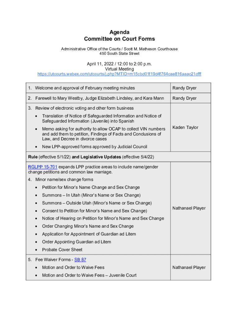 Fillable Online Agenda utcourts gov Fax Email Print pdfFiller
