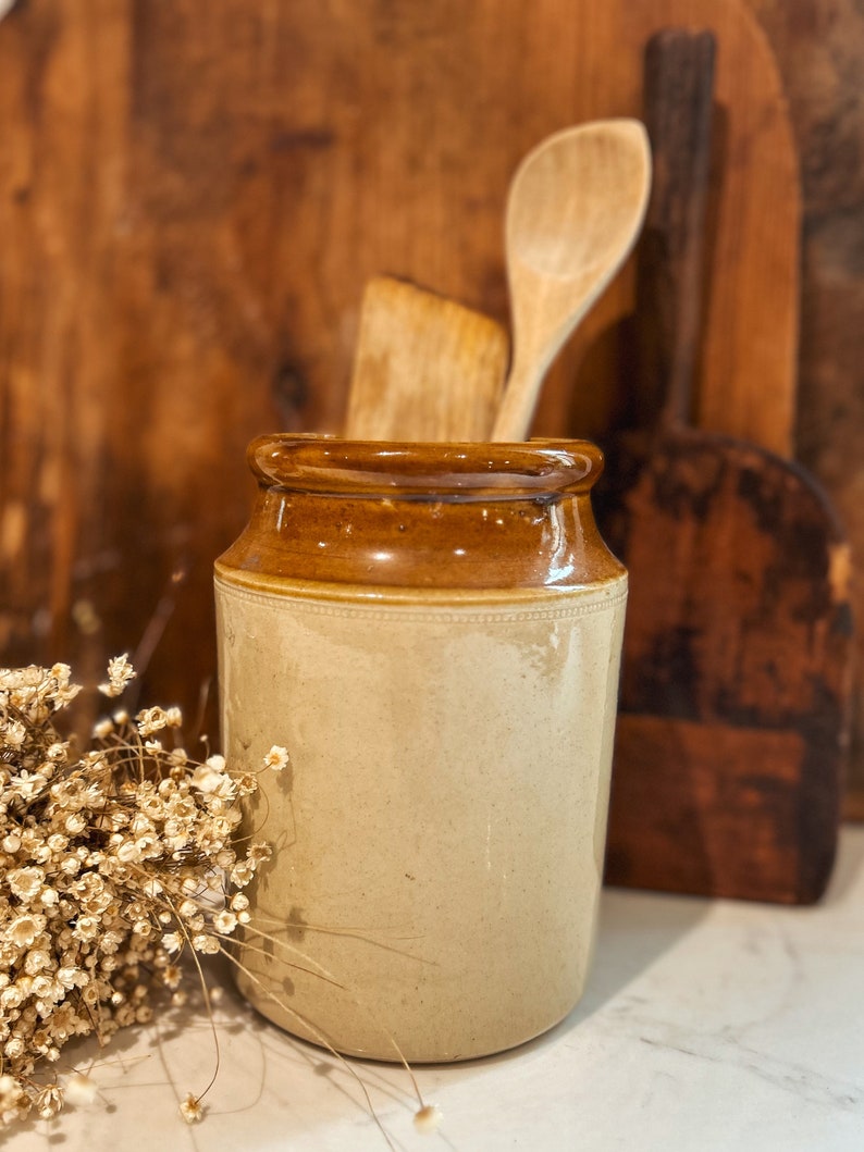 Vintage Stoneware Jar Salt Glazed Pots Utensil Pot Glazed