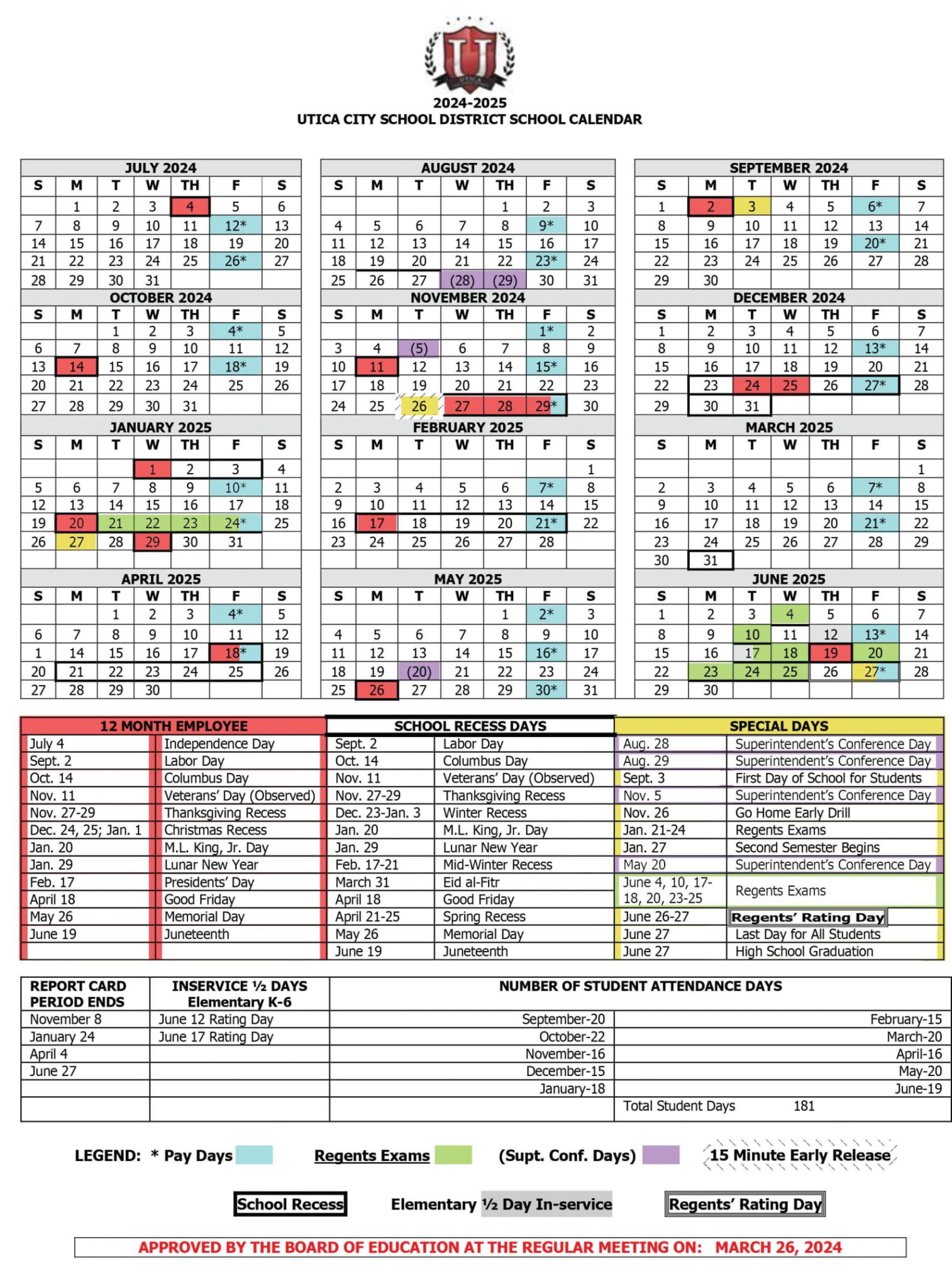 Utica City School District Calendar 2025 2026