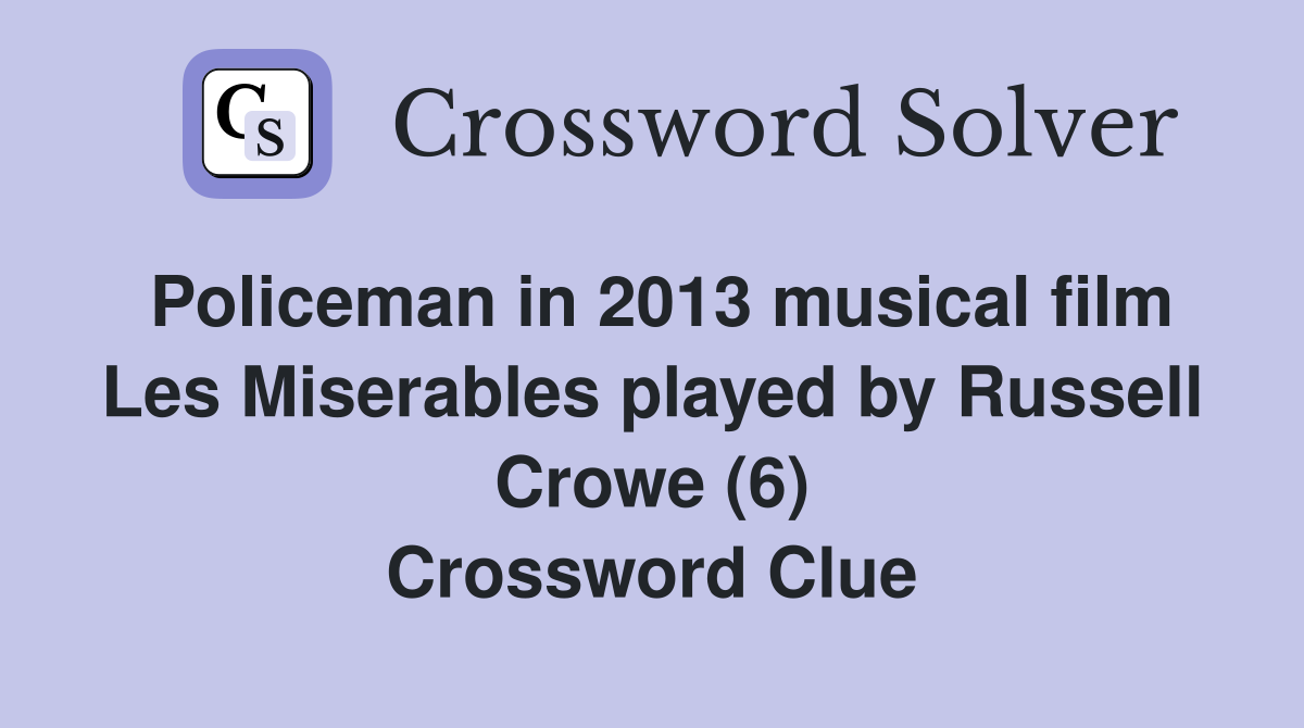 Policeman in 2013 musical film Les Miserables played by Russell Crowe