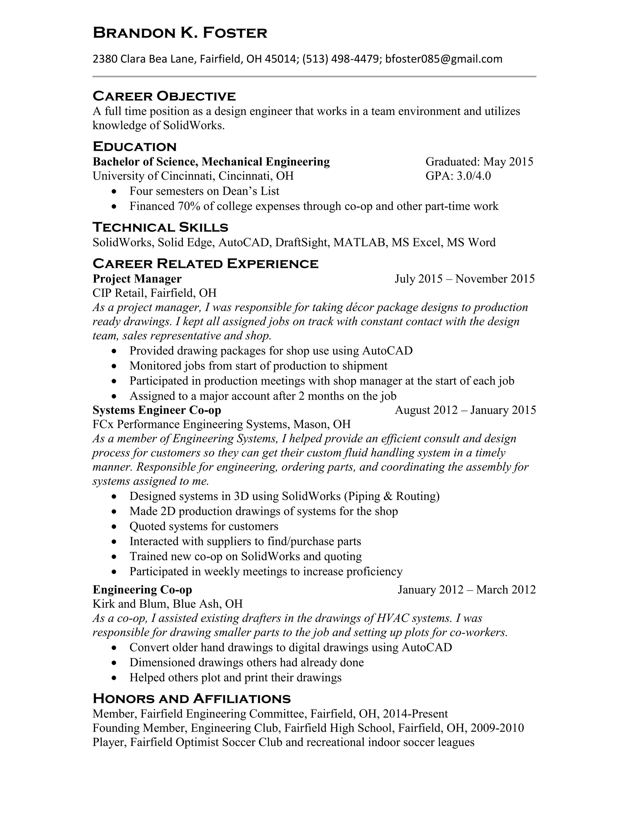 breigh foster resume PDF 3 D Printing Industrial Engineering