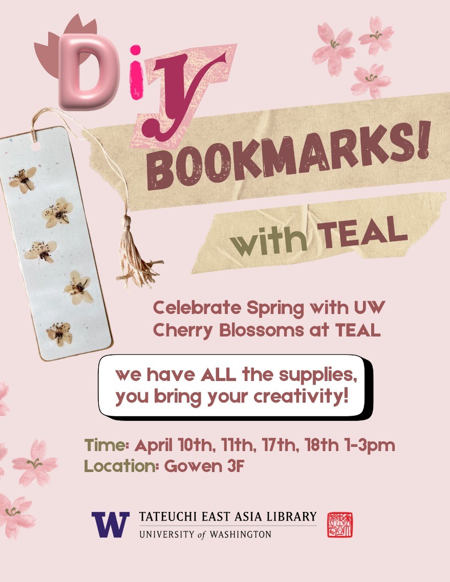 TEAL Cherry Blossom Bookmark Making Friday Apr 11 2025 1 3 p m