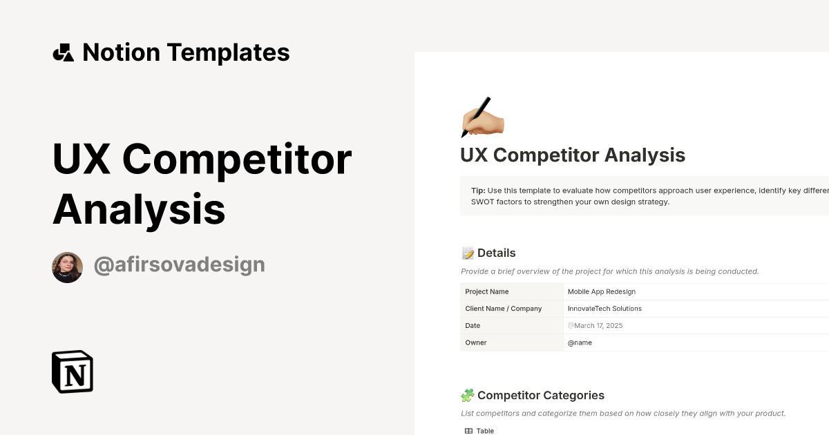 UX Competitor Analysis Template by Anastasiia Firsova Notion Marketplace