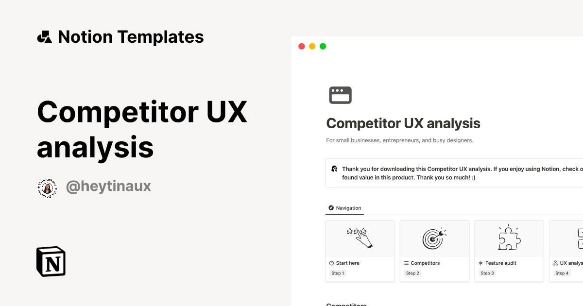 Competitor UX analysis Template by Tina Iurkova Notion Marketplace