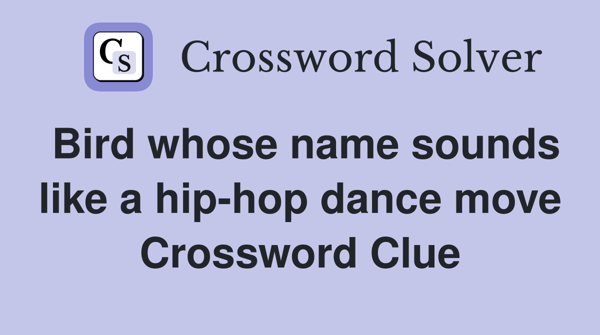 Bird whose name sounds like a hip hop dance move Crossword Clue