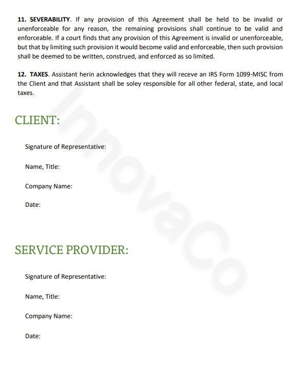 Printable Virtual Assistant Contract Template: Editable Client Service