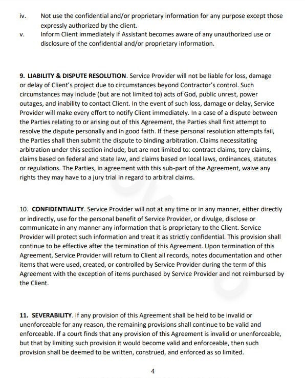 Virtual Assistant Agreement Template