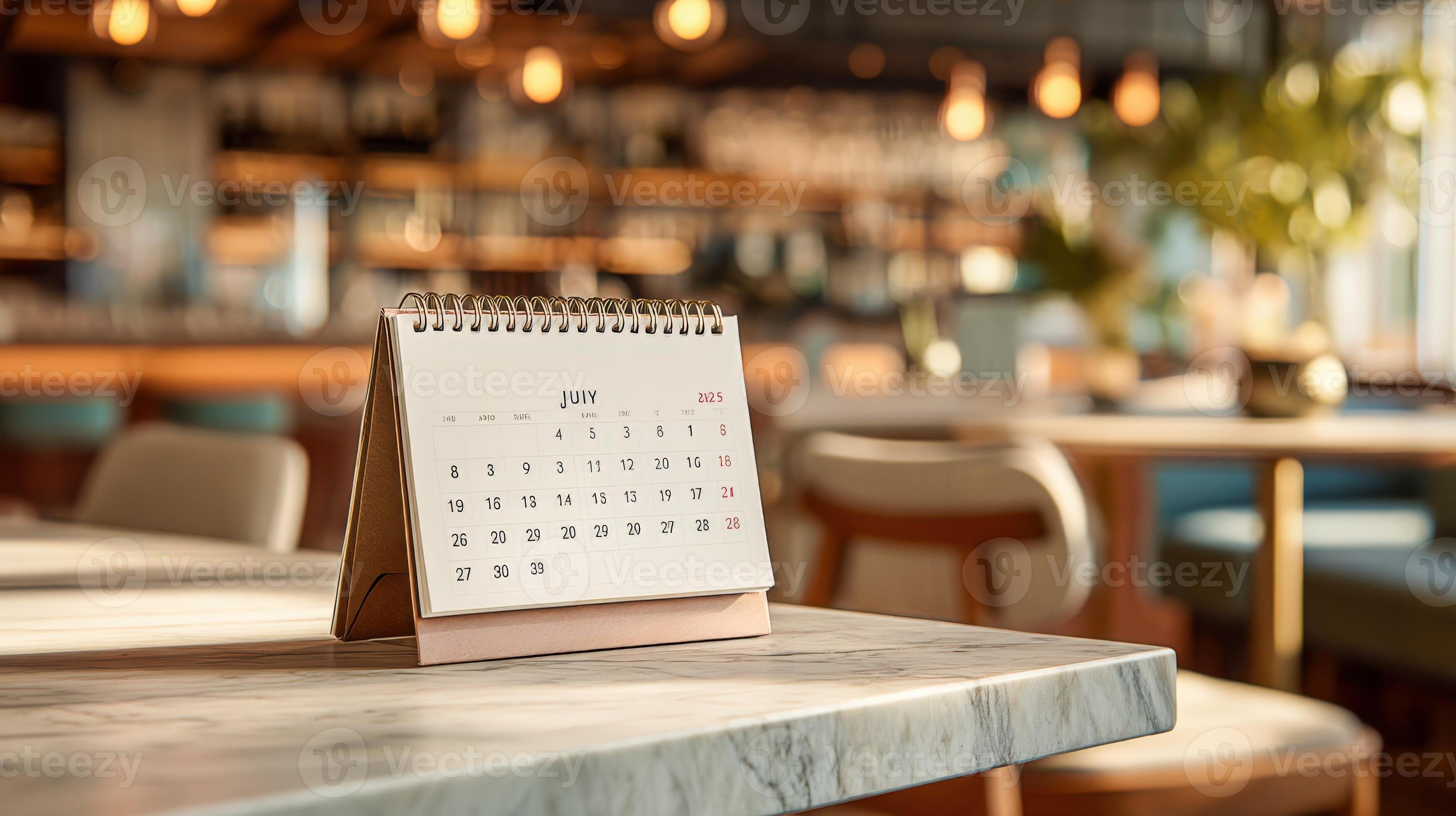 Calendar on Table in Bright Restaurant Setting Planning or Deadline