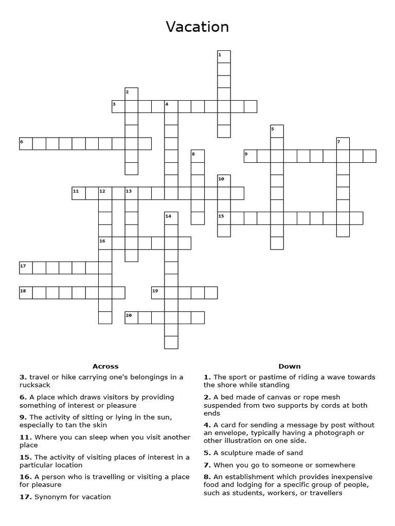 Vacation Mini Crossword Puzzle Puzzle Cheer