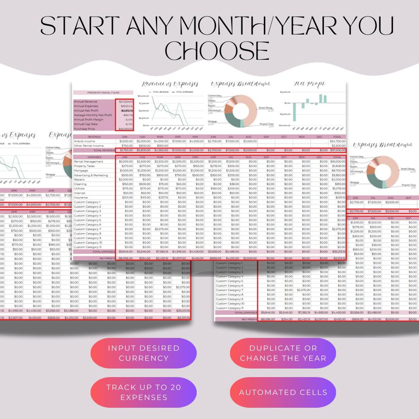 Rental Income Expense Tracker Vacation Rental Spreadsheet