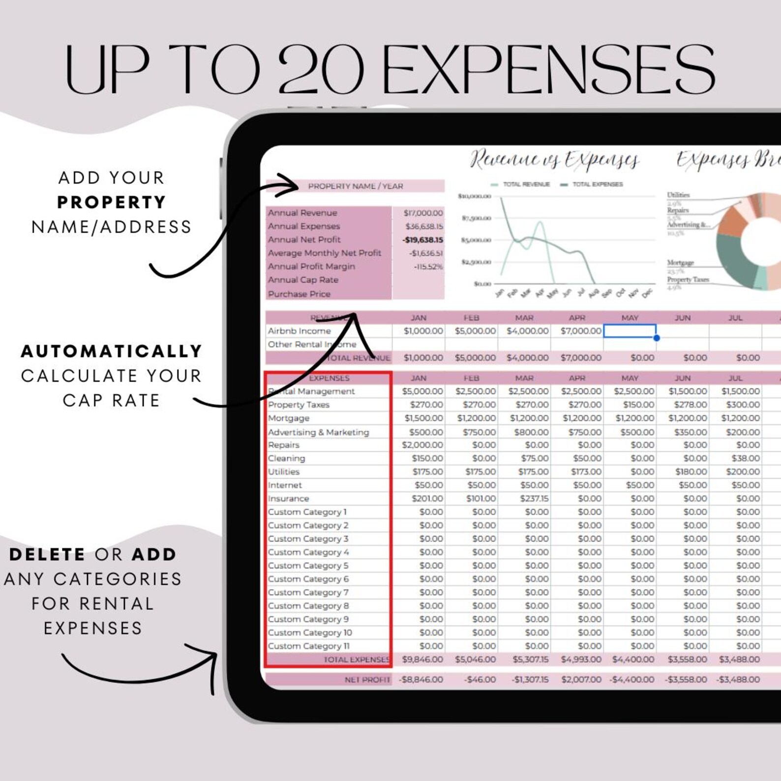 Airbnb Income Expense Template Airbnb Host Spreadsheet Template