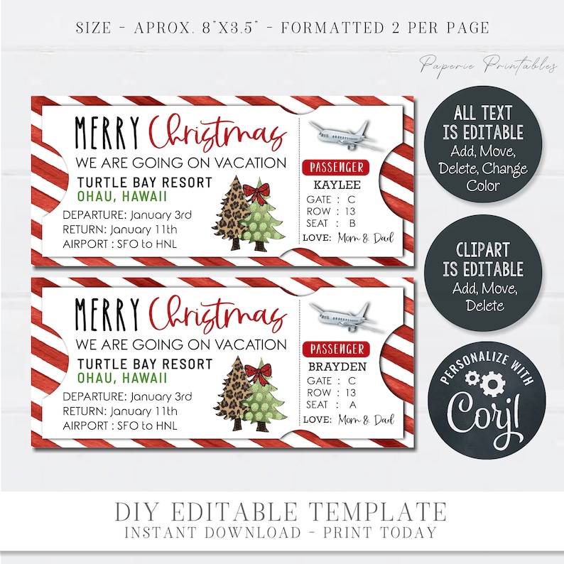 EDITABLE Christmas Vacation Ticket Vacation Ticket Template Etsy