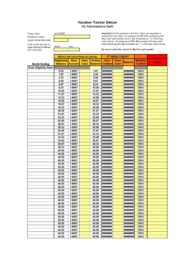 Vacation Tracker Excel Template 2019 Free FREE Printables