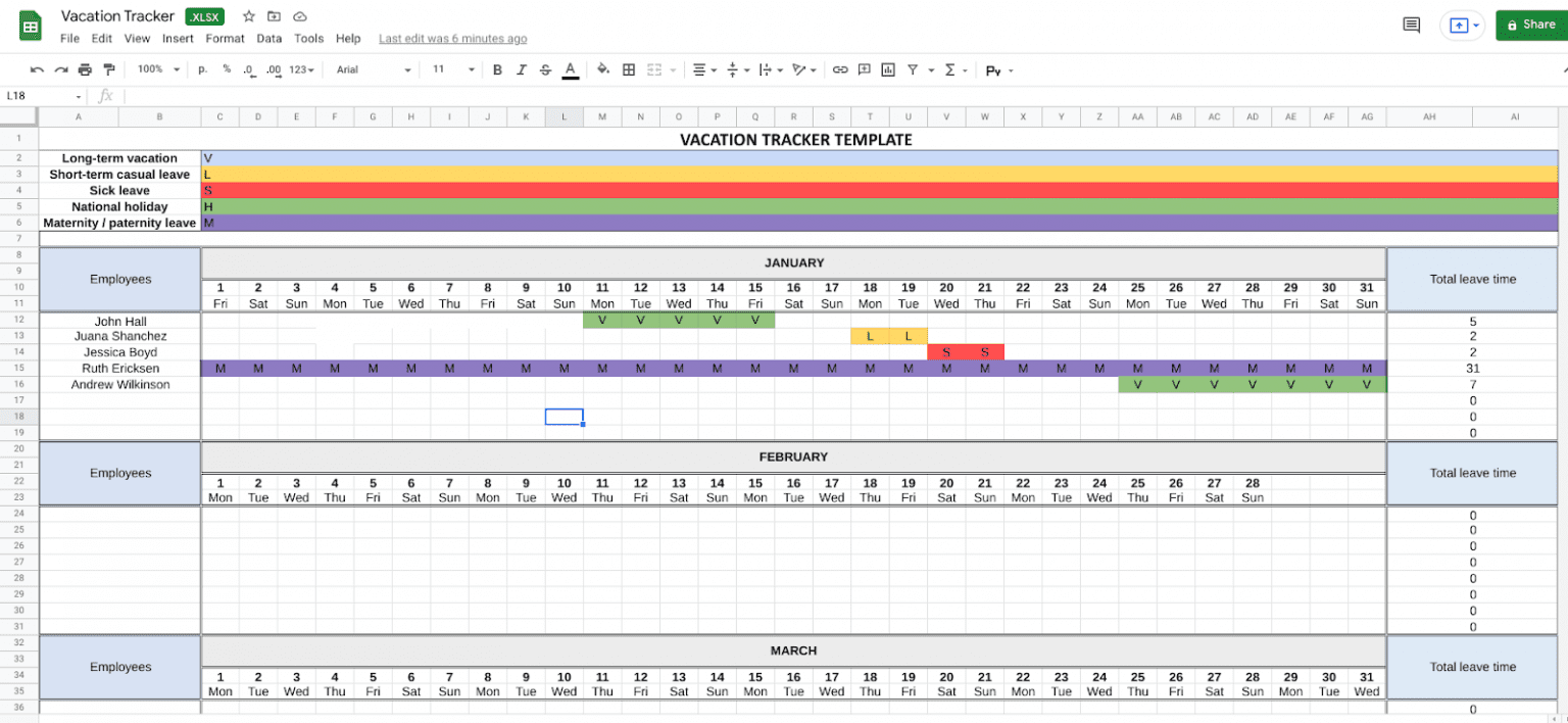 Employee Vacation Tracking Excel Template Easy to Use Spreadsheet