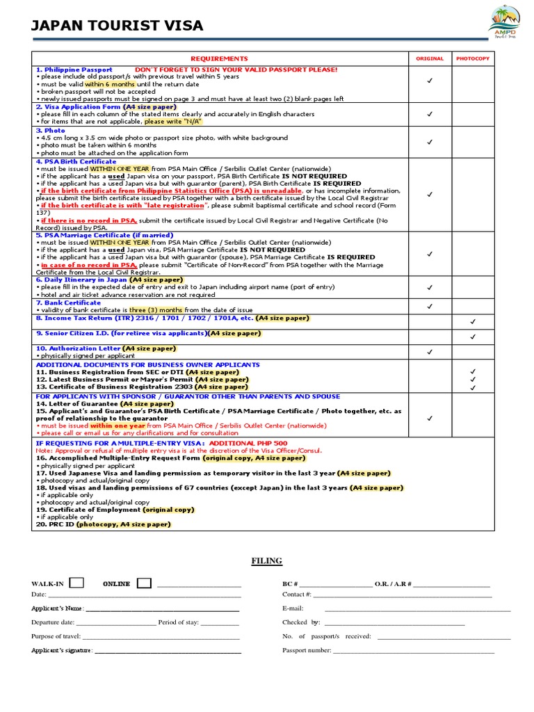 Japan Visa Document Requirements Japan Tourist Visa Requirements