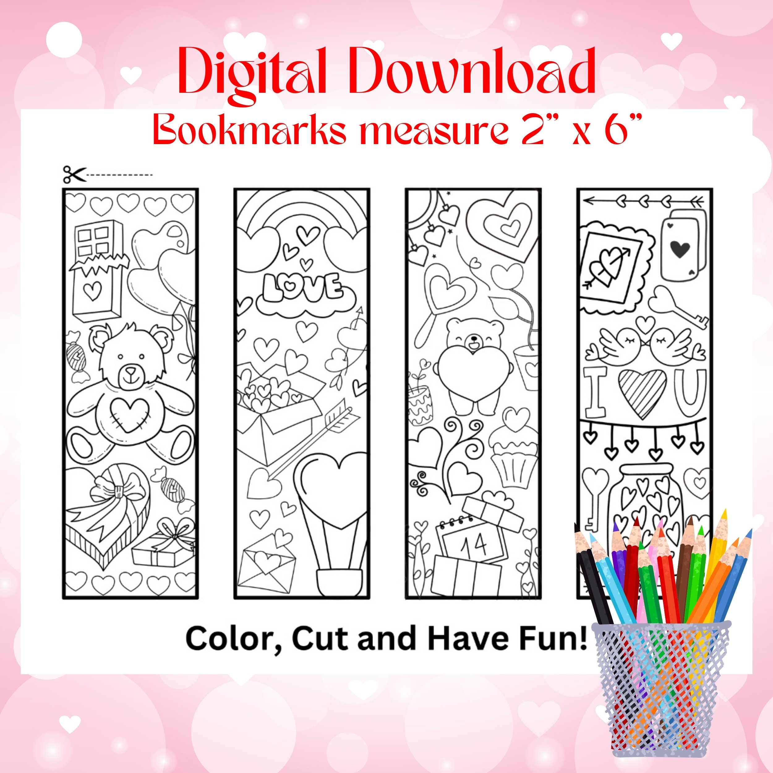 Free valentine bookmarks to color cute printables Artofit