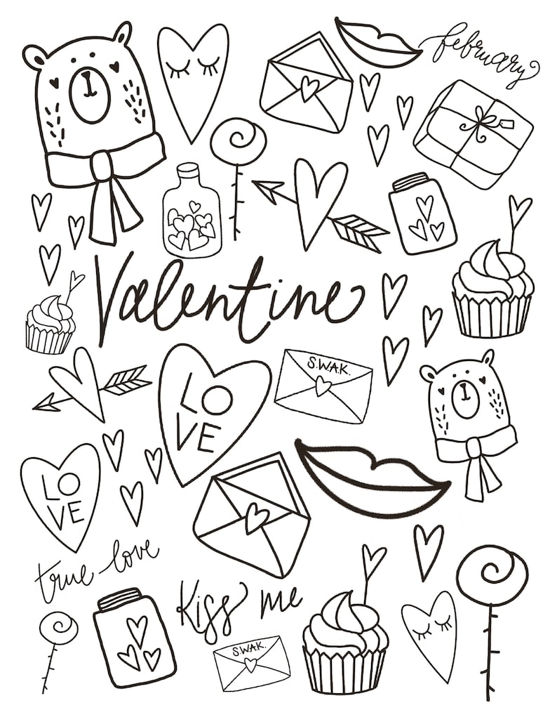 Valentine Day Printable Coloring Page digital Download instant Download