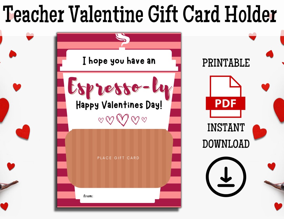 Valentine Printable Teacher Gift Card Holder Valentine Teacher Card