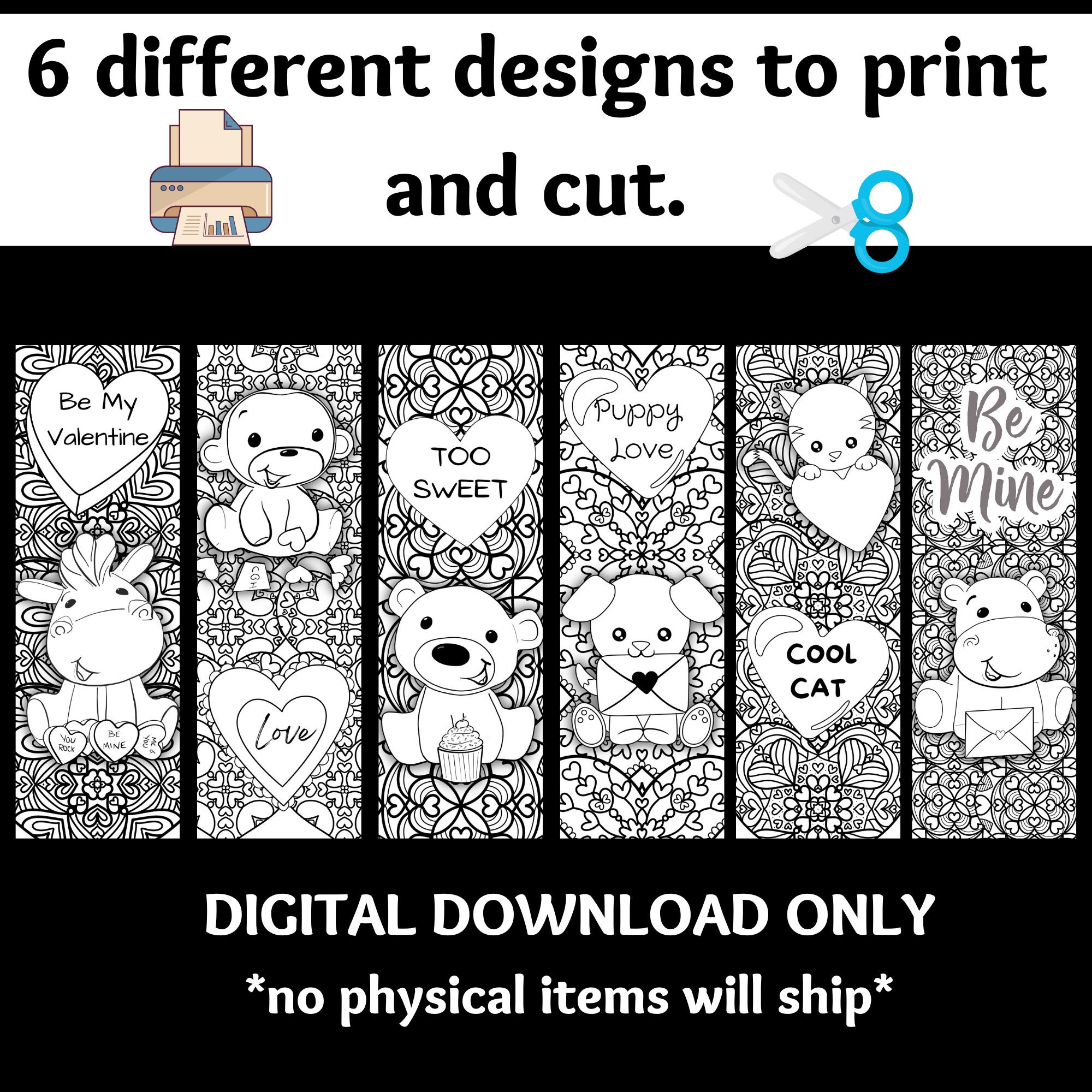 Valentines Day Coloring Bookmarks Digital Bookmarks to Color