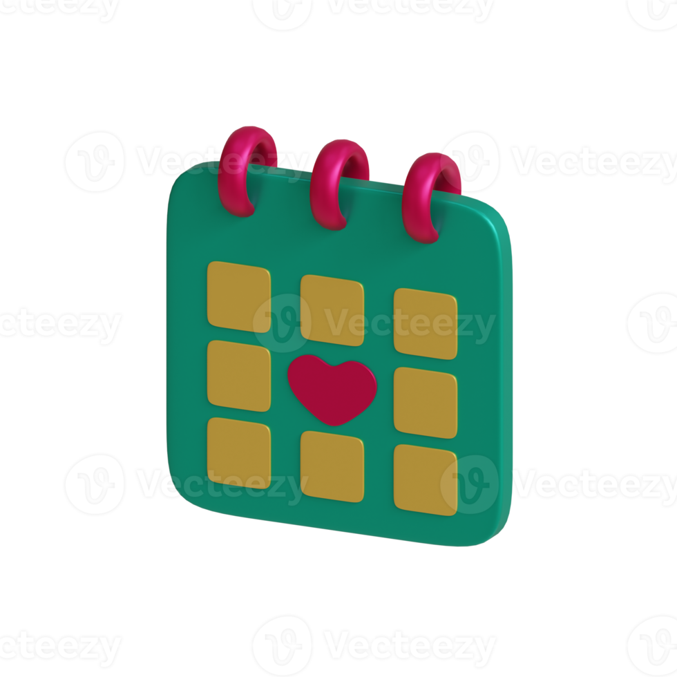 3d Valentines Day Calendar Object With Transparent Background Heart 3d
