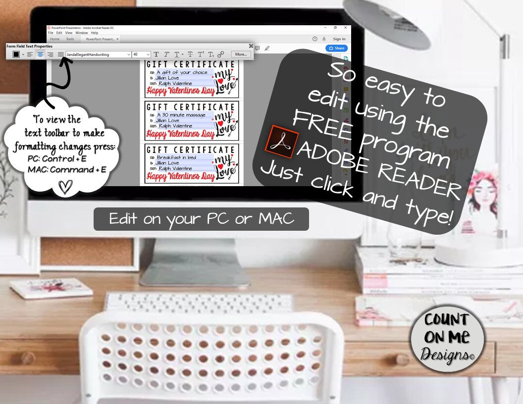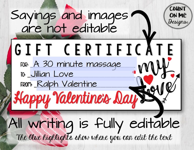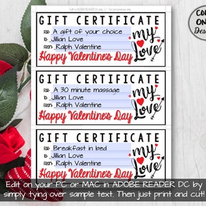 Editable Valentine #39 s Day Gift Certificate Template Gift Voucher