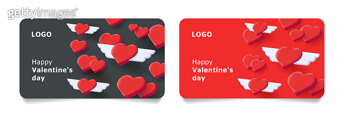 Set of Valentines day gift certificates with isometric 3d hearts with