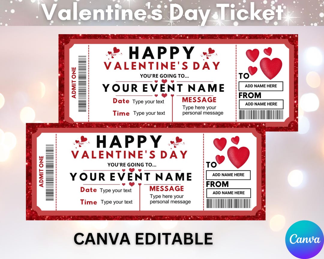 PERSONALIZED Editable Valentines Day Ticket valentine s Day Tickets