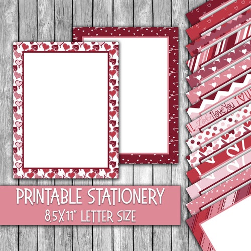 Printable Valentines Stationery Bundle Valentines Day Stationery Set