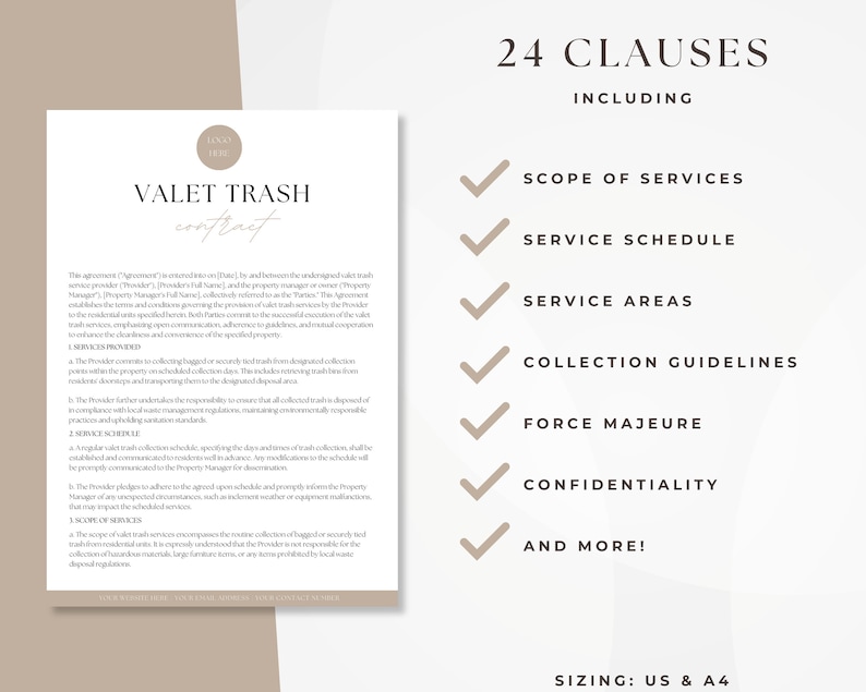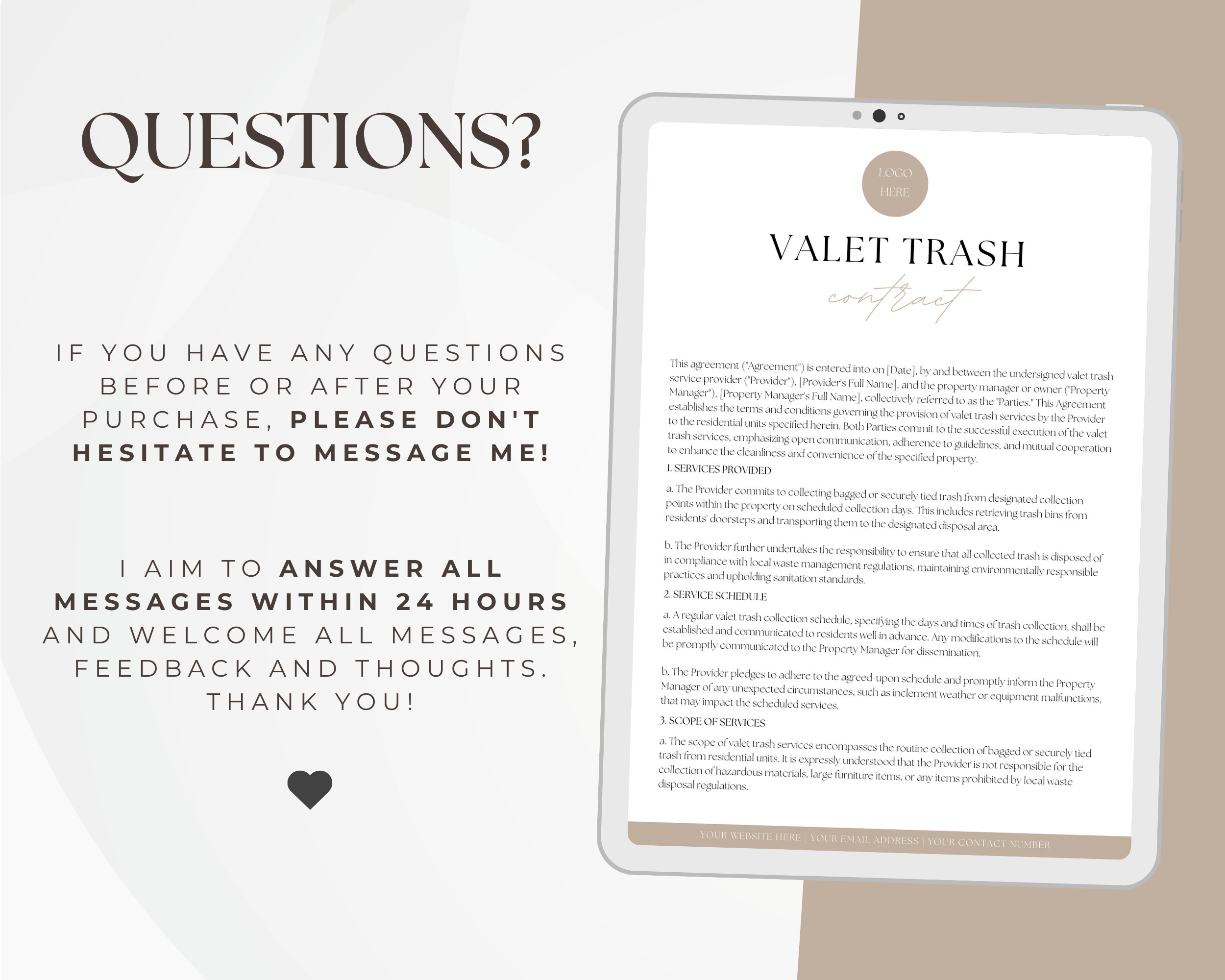 Valet Trash Service Contract Template Professional Easy to Use Etsy
