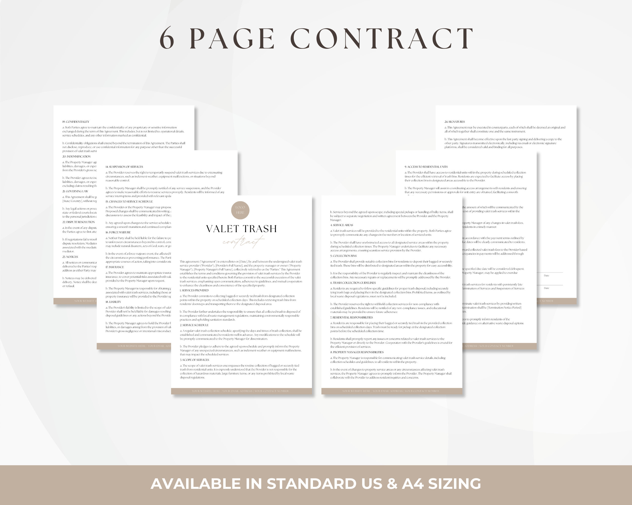 MINIMALIST EDITABLE Valet Trash Services Contract Template Editable