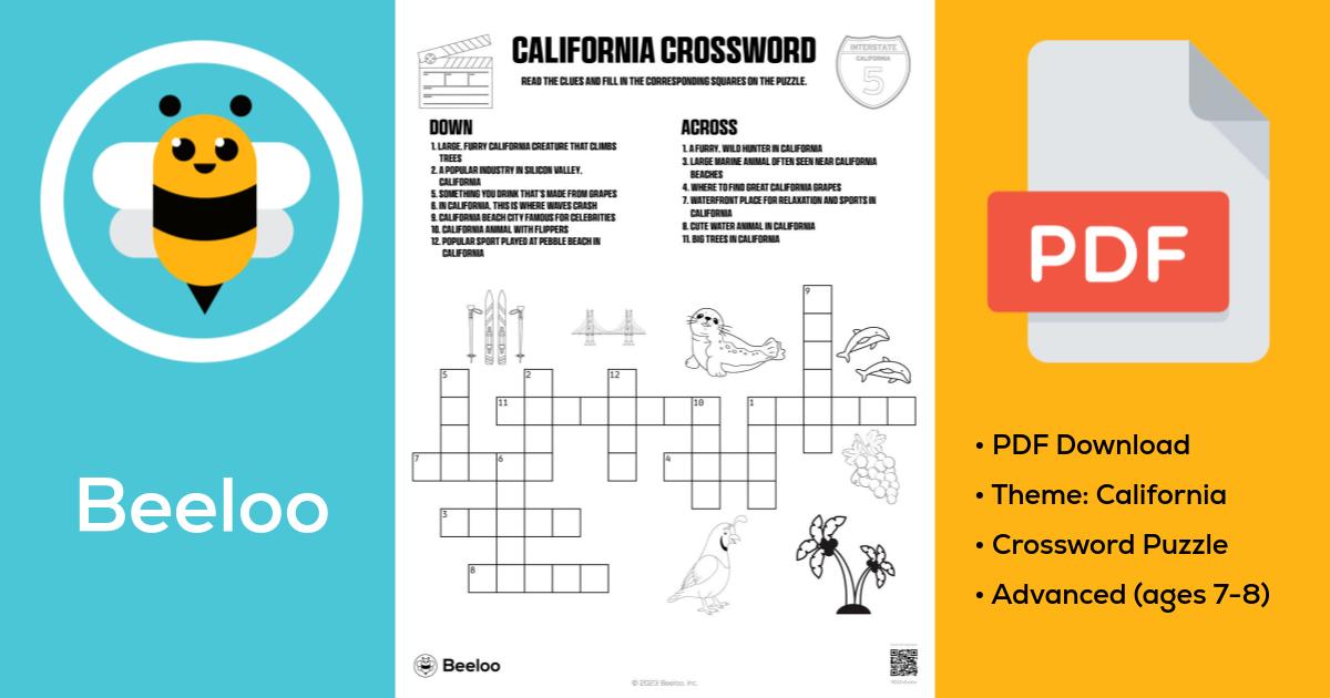 California Crossword • Beeloo Printable Crafts and Activities for Kids