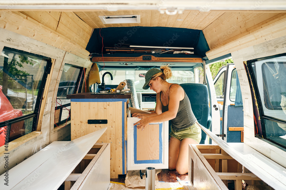 Woman RVer Kate Bright converts cargo van into her own custom traveling
