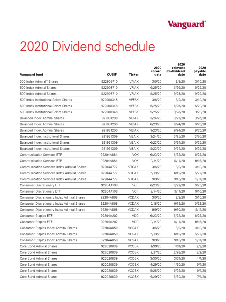 Vanguard Tax Calendar