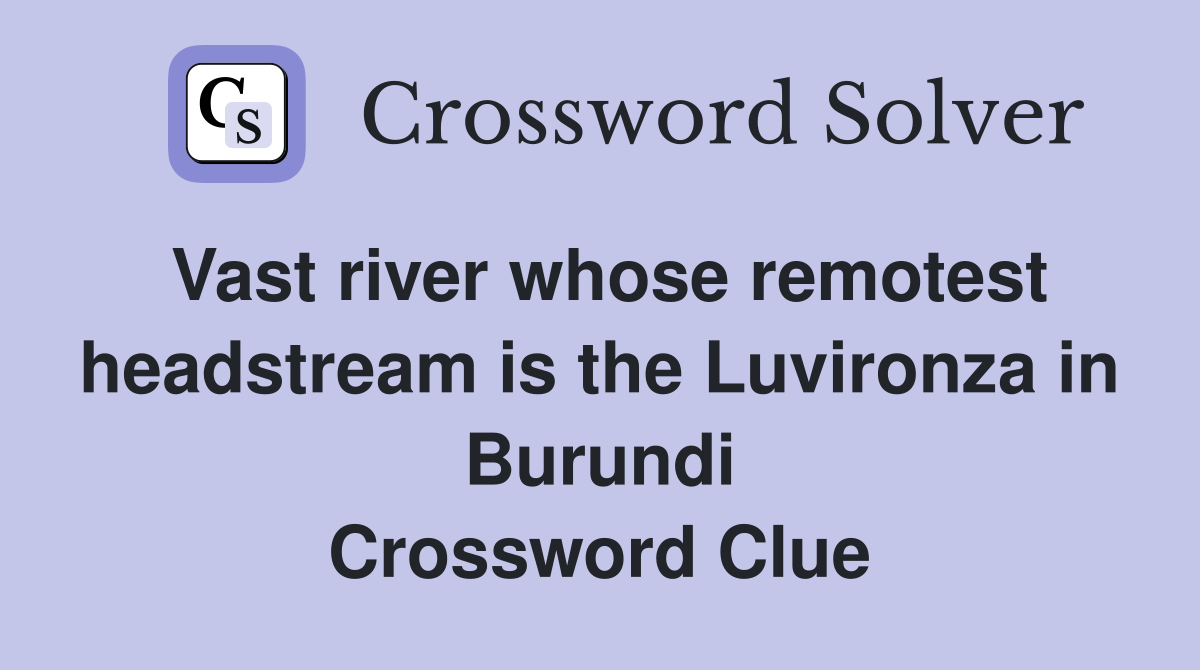 Vast river whose remotest headstream is the Luvironza in Burundi