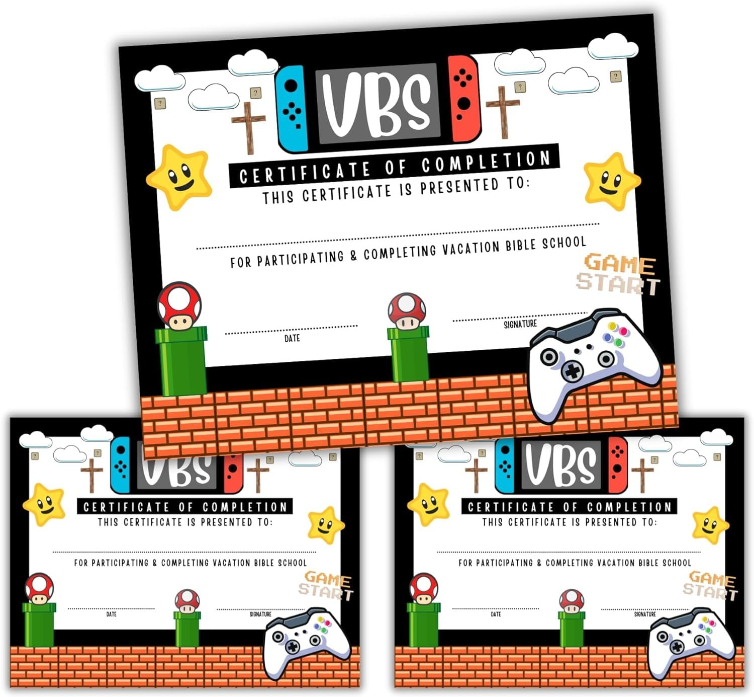Vacation Bible School VBS Certificate of Completion Award 50 pk 8 5x11