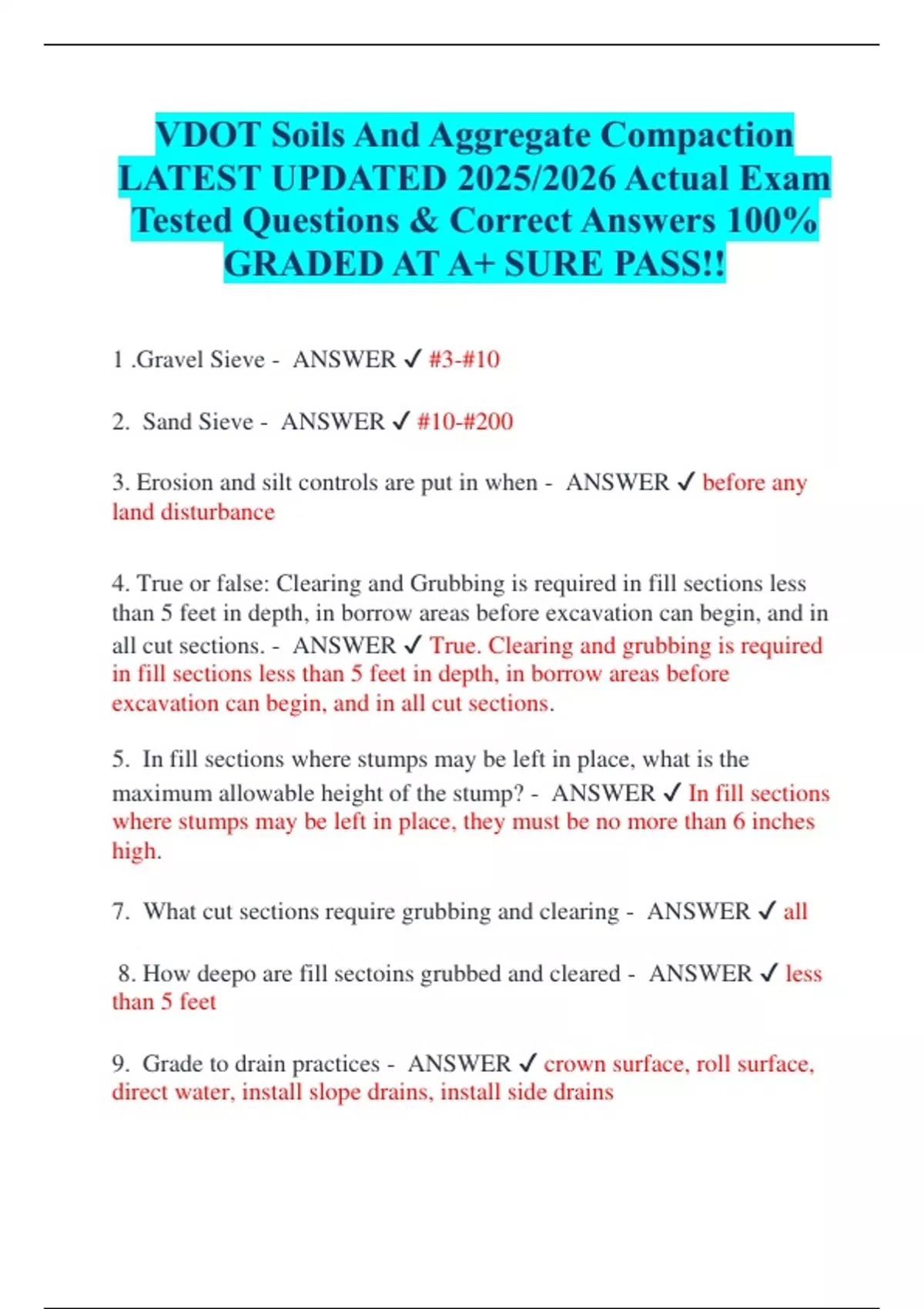 VDOT SOILS AND AGGREGATE COMPACTION EXAM 2025 QUESTIONS AND ANSWERS