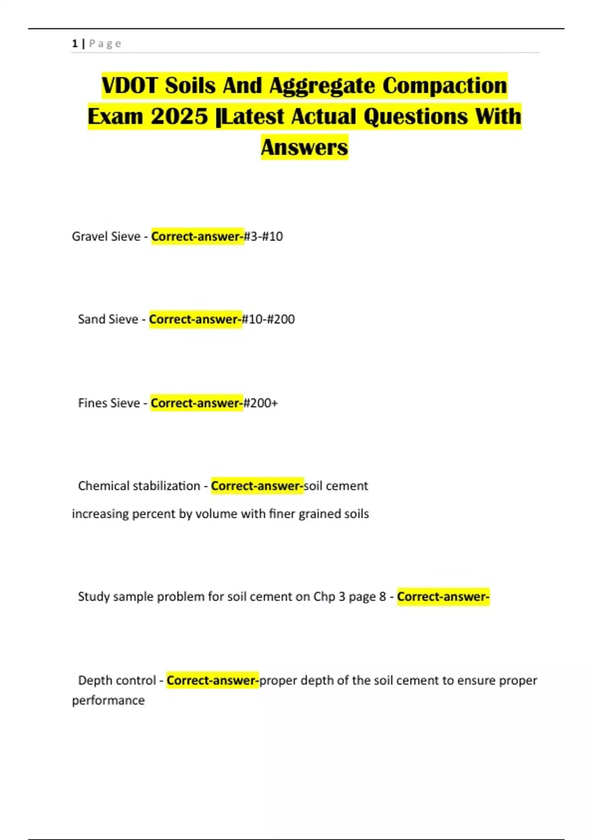 VDOT Soils And Aggregate Compaction Actual Exam Tested Questions