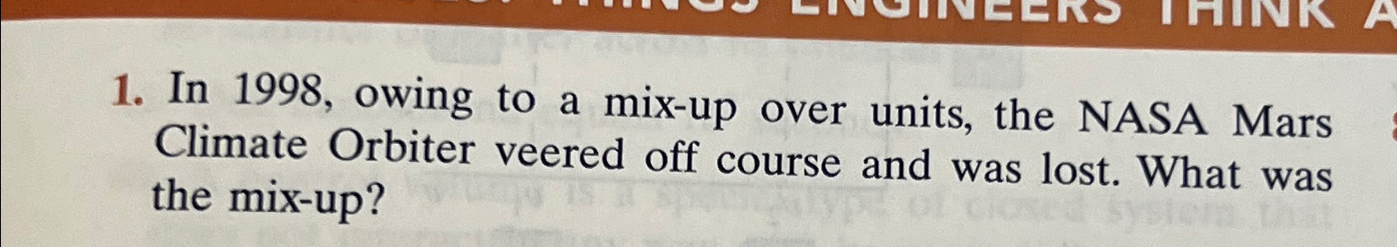 Solved In 1998 owing to a mix up over units the NASA Chegg com