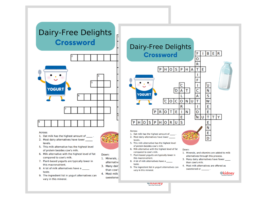 Dairy Free Delights Crossword a fun game for your kidney patients to