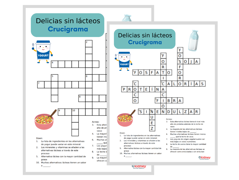 Spanish Dairy Free Delights Crossword: a fun game for your kidney