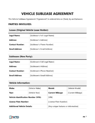 Vehicle Sublease Agreement Template Edit and Download PDF