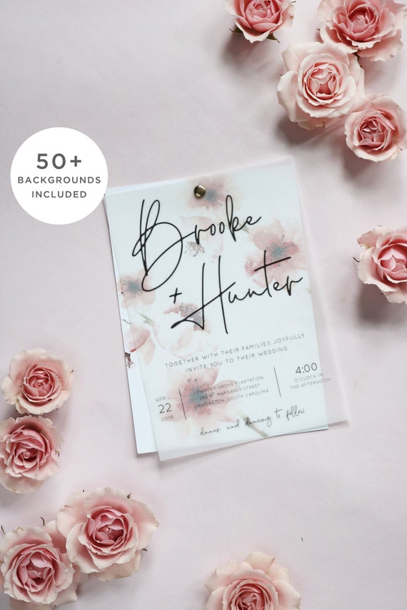 Modern Vellum Overlay Wedding Invitation Template Sheer Etsy