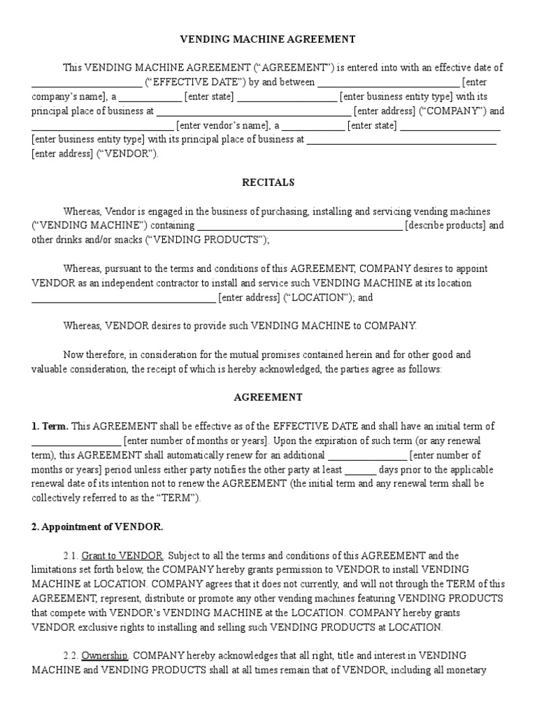 Vending Machine Agreement Template