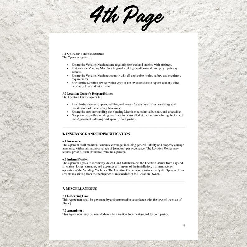Editable Vending Machine Agreement Template Customizable Contract A4