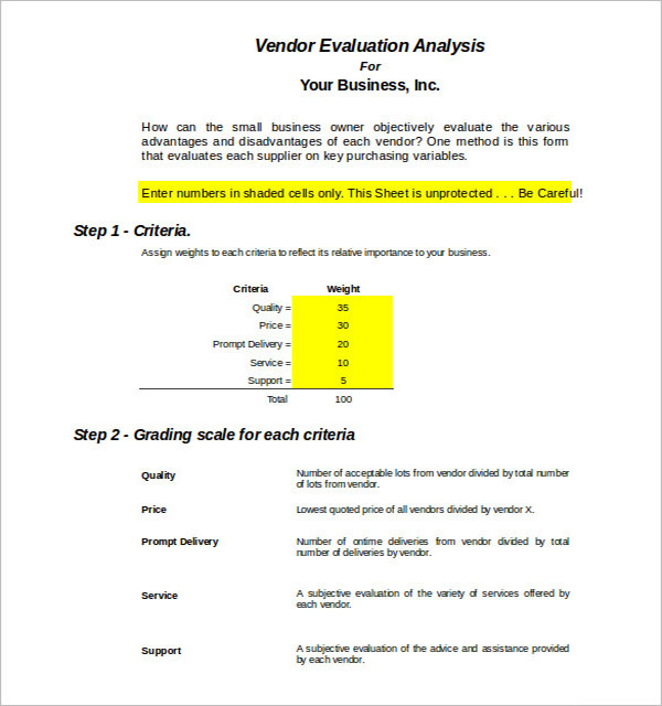 Vendor Analysis Template SampleTemplatess SampleTemplatess